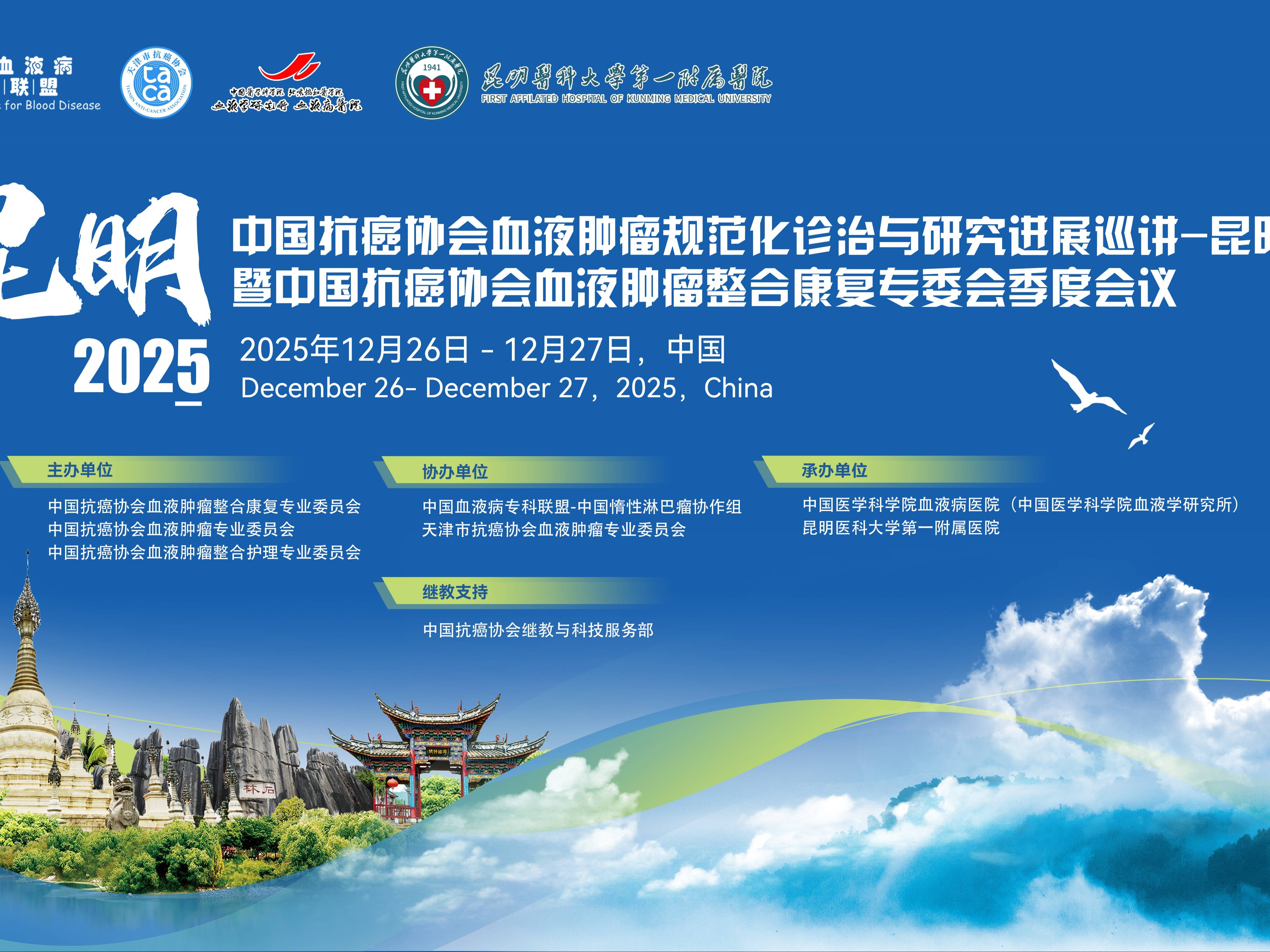 【会议通知】中国抗癌协会血液肿瘤规范化诊治与研究进展巡讲一昆明站暨中国抗癌协会血液肿瘤整合康复专委会季度会议