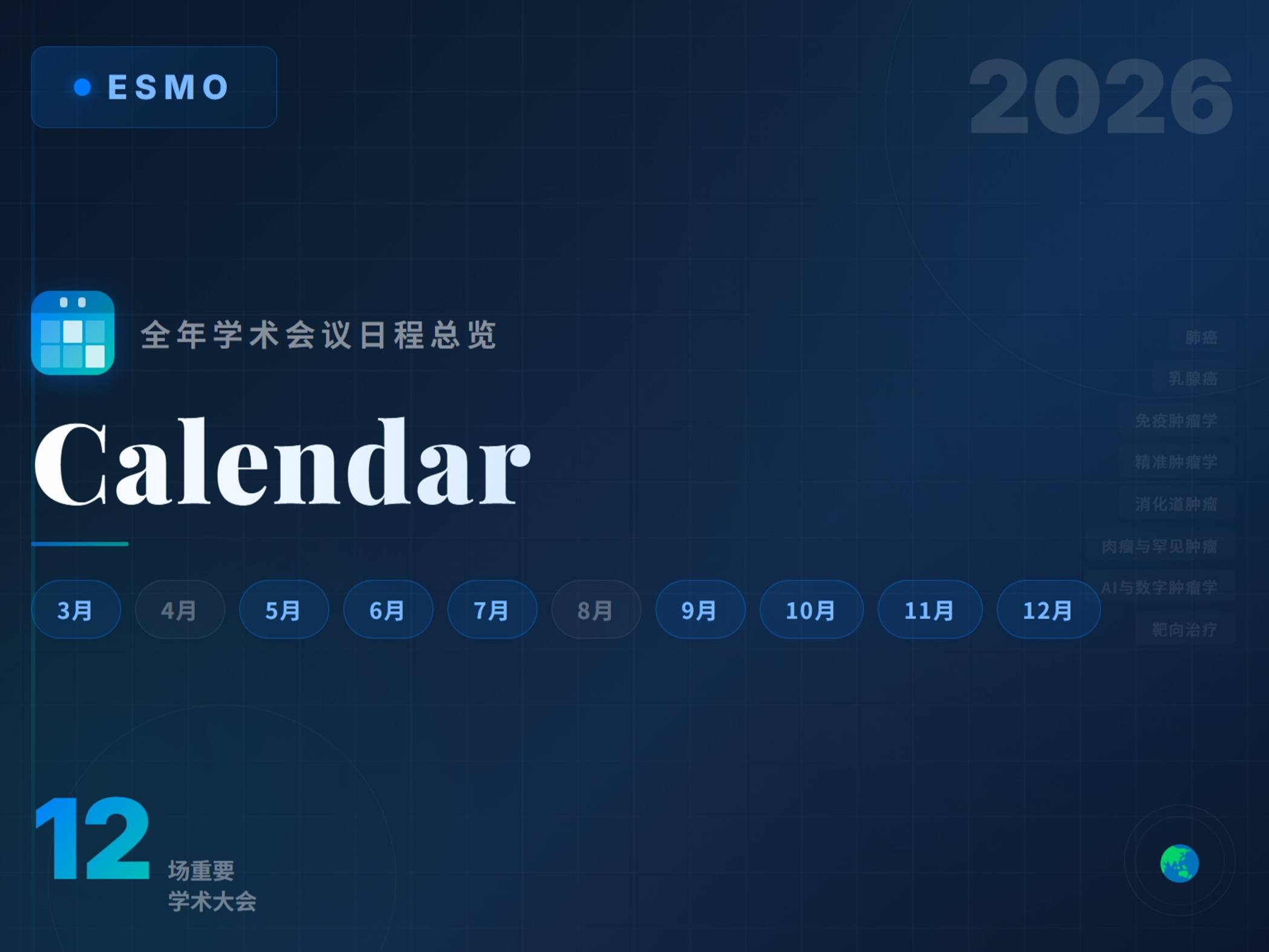 2026 ESMO全年日程重磅发布!12场学术盛会贯穿全年,年度大会10月登场,两大亚洲专场不容错过