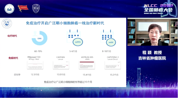 吉林省肿瘤医院程颖教授为我们带来了题为“小细胞肺癌治疗的现在和未来”的专题分享。小细胞肺癌(SCLC)作为一种侵袭性神经内分泌恶性肿瘤,具有肿瘤倍增时间短、出现转移早、5年生存率低的特点。近年来,新兴的免疫疗法为小细胞肺癌患者开辟了癌症精准治疗的新领域。程颖教授表示,免疫治疗建立SCLC一线治疗新标准,中国SCLC一线治疗与国际接轨将实现新的突破,更加高效的治疗策略正在探索。芦比替丁中国桥接研究获得了与国际研究一致的结果,新的验证研究正在进行;安罗替尼建立了SCLC三线及后线治疗标准,新的免疫药物和ADC药物在复发SCLC中看到初步疗效,是SCLC治疗重要的探索方面。SCLC的分子分型逐渐清晰,如何进行分型诊断,针对分子分型的关键分子的可行的有效的治疗策略蓄势待发。免疫治疗是近年来颇有前景的SCLC治疗方法,但其仍存在许多挑战,例如疗效适中且仅限于一小部分患者等,确定预测性生物标志物以选择最有可能从免疫治疗中受益的患者是未来研究的关键。
