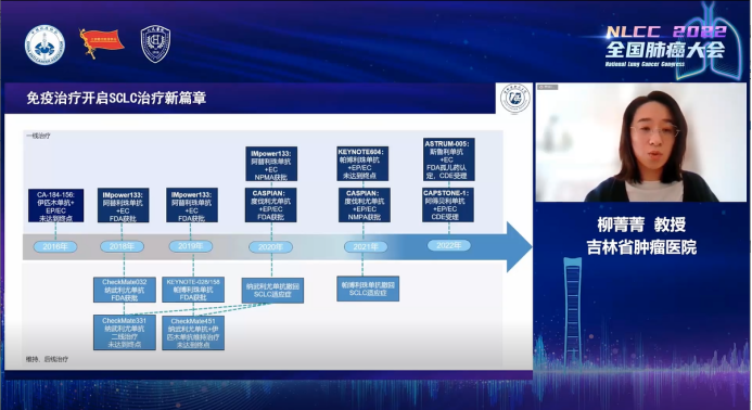 吉林省肿瘤医院柳菁菁教授分享了《免疫时代的小细胞肺癌临床思考》,PD-L1抑制剂联合化疗为ES-SCLC一线治疗带来全新突破,ASTRUM005研究进一步扩大了生存获益,建立了ES-SCLC一线治疗新格局。此外,亚裔人群接受斯鲁利单抗联合化疗获益显著;中国人群前瞻性真实世界研究再次验证CASPIAN治疗模式的安全性以及疗效。
