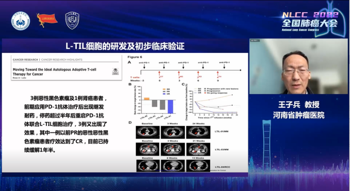 河南省肿瘤医院王子兵教授的学术报告是《细胞治疗在肺癌中的治疗进展》。王子兵教授指出目前已有5款CAR-T细胞产品被FDA批准用于血液肿瘤的治疗,截至2021年4月16日,全球共有2073种活性细胞治疗药物研发管线,比2020年同期增加了572种,增长率为38%。奥沙利铂预处理改善CAR-T细胞治疗的ROR1肺癌GEM模型。CIK细胞增强晚期NSCLC对PD-1抗体的临床反应。