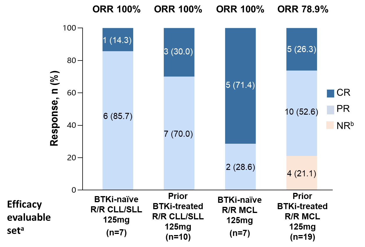 a 疗效可评估患者包括已入组且至少进行过一次基线后肿瘤评估的患者。b NR包括疾病稳定(SD)和疾病进展(PD)。