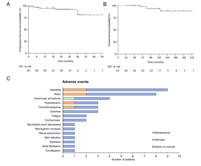 图1 CLL患者生存情况以及AE事件发生情况