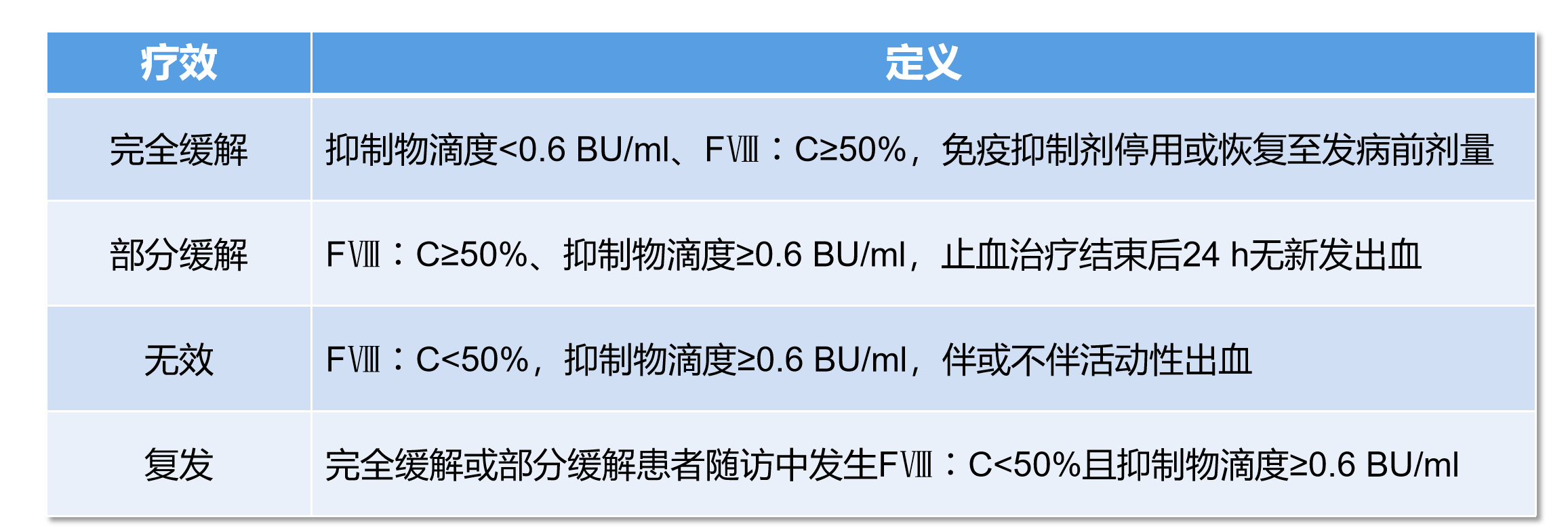 表:AHA抑制物清除疗效判断
