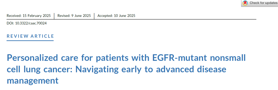 Borgeaud M, et al. Personalized care for patients with EGFR-mutant nonsmall cell lung cancer: Navigating early to advanced disease management. CA Cancer J Clin. 2025 Jul 17.