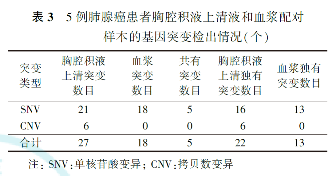 本研究有一定的局限性。(1)样本量较小。(2)本研究中,每例患者的肿瘤组织、血浆、胸腔积液样本并非在同一时间点获取。因此,尚不能客观而完美地揭示不同样本之间突变信息的关系。