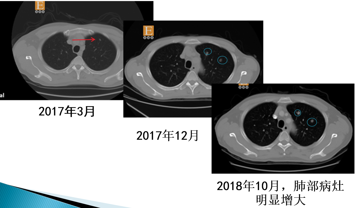 男,57岁,2017年1月因血尿伴左腰部疼痛检查,外院检查发现左肾7*6cm肿瘤,入我院手术治疗。术前CT双肺微小结节,怀疑肺转移。