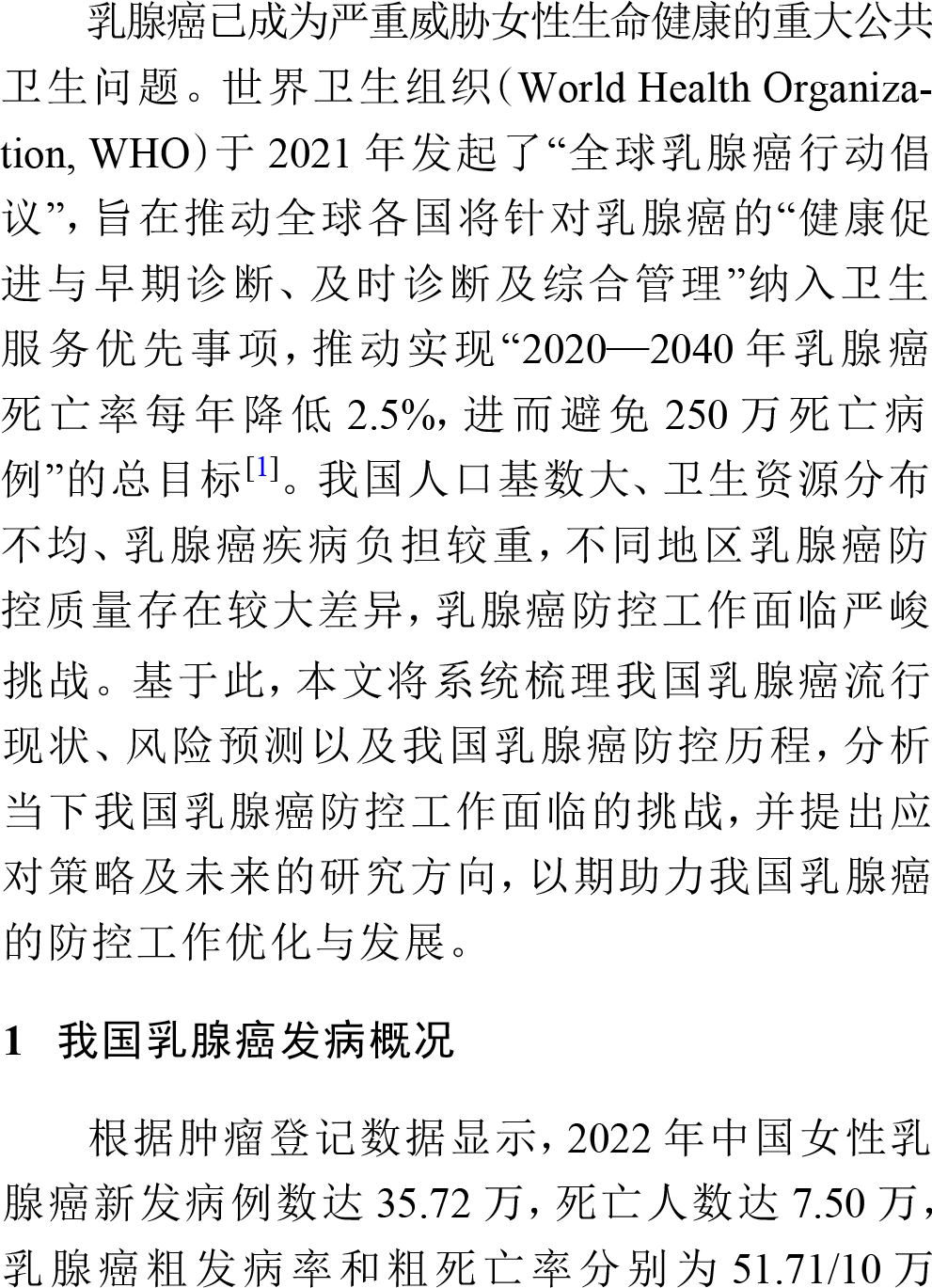 原文标题 :中国乳腺癌预防控制现状、问题及应对策略