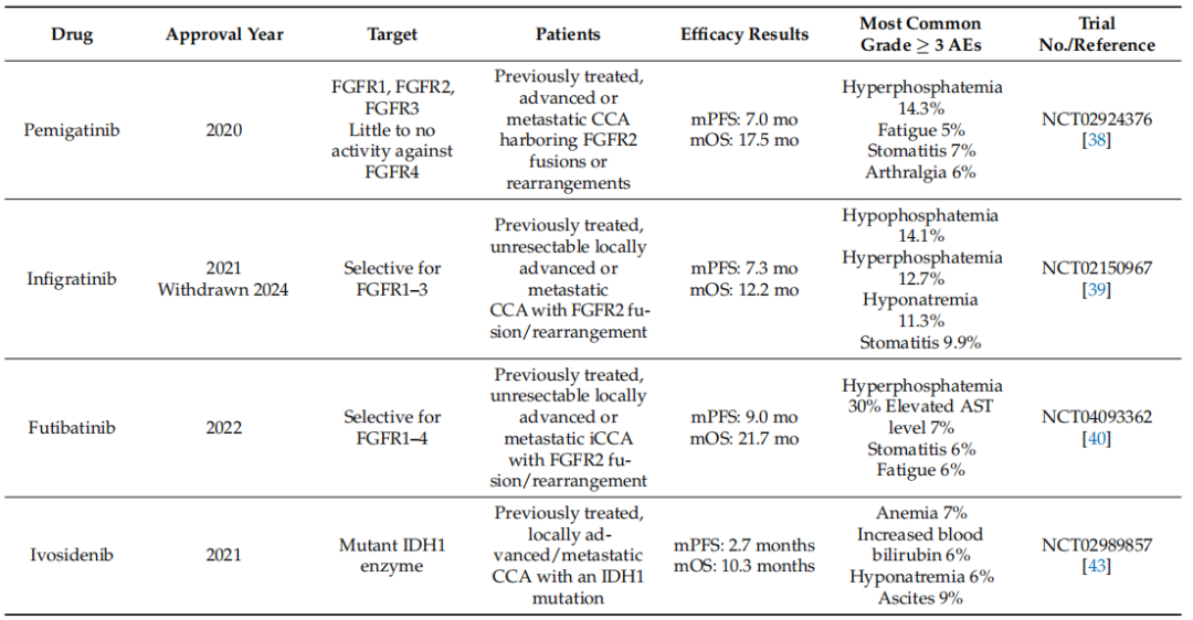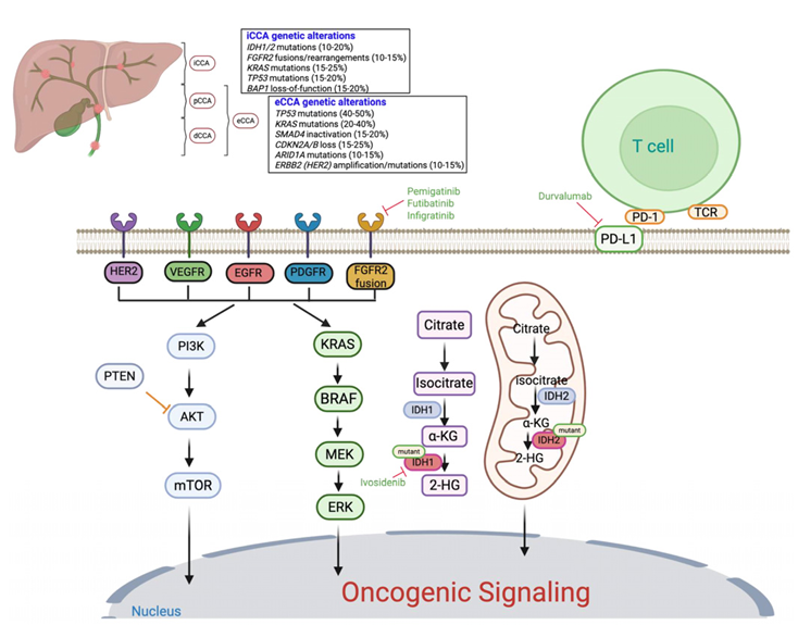 3. Darman L, Kaurich Q, Hassan MS, et al. Expanding Horizons in Cholangiocarcinoma: Emerging Targets Beyond FGFR2 and IDH1. Int J Mol Sci. 2025 Nov 5;26(21):10755. doi: 10.3390/ijms262110755. PMID: 41226789; PMCID: PMC12608419.