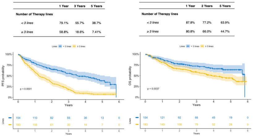 图2. 按治疗线列出的PFS和OS