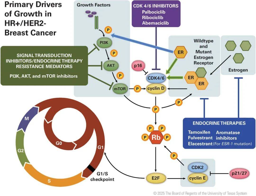激素受体阳性HER2阴性乳腺癌是晚期乳腺癌最常见的亚型,其病程虽然相对漫长,但是异质性强,且几乎对所有内分泌治疗最终都可产生耐药。德克萨斯大学MD安德森癌症中心和贝勒医学院的长篇综述对该领域从生物学机制到临床实践的最新进展进行了系统梳理,其核心思想可概括为:治疗策略必须从一成不变的固定顺序,转变为与时俱进的动态精准模式。这要求我们如同经验丰富的舵手,根据航海图(生物学标志物)和洋流变化(耐药机制演变),在整个疾病航程中不断调整航向。