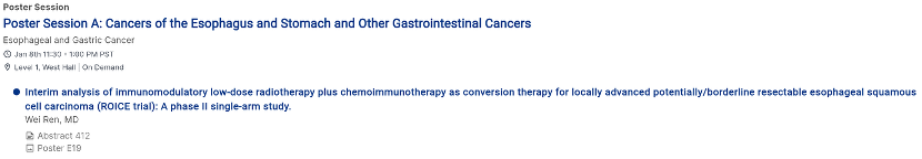 研究标题: 局部晚期潜在/临界可切除食管鳞状细胞癌转化治疗中免疫调节性低剂量放疗联合化学免疫疗法的中期分析(ROICE试验):一项II期单臂研究