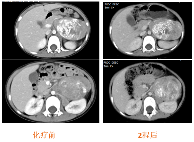 图5:治疗前及2程化疗后CT