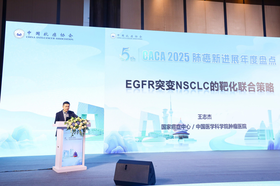 主旨报告一:中国医学科学院肿瘤医院内科胸部肿瘤病区主任王志杰教授分享了 “EGFR突变NSCLC的靶化联合策略”,深入解读了靶向治疗与化疗联合应用的最新研究成果与临床策略。