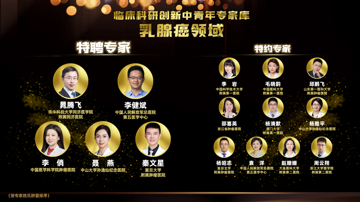 本次总结交流的5位特聘专家,分别是中山大学孙逸仙纪念医院聂燕教授、华中科技大学同济医学院附属同济医院晁腾飞教授、中国人民解放军总医院第五医学中心李健斌教授、复旦大学附属肿瘤医院秦文星教授和中国医学科学院肿瘤医院李俏教授等;以及10位特约专家,分别是中国科学技术大学附属第一医院李岩教授、中国医科大学附属第一医院毛晓韵教授、山东第一医科大学附属肿瘤医院邱鹏飞教授、浙江省肿瘤医院邵喜英教授、厦门大学附属第一医院杨清默教授、中山大学孙逸仙纪念医院杨雅平教授、复旦大学附属肿瘤医院杨昭志教授、中国人民解放军总医院第五医学中心袁洋教授、大连医科大学附属第二医院赵姗姗教授和浙江大学医学院附属第二医院周云翔教授