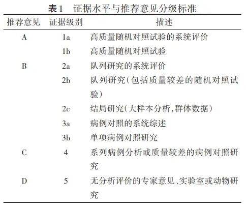 本共识采用德尔菲(Delphi)专家咨询法,通过多轮匿名问卷、结构化意见反馈及专家集体研讨的方式,系统整合多学科专家的临床实践经验与最新循证医学证据;所有推荐意见均依据推荐意见分级的评估、制定与评价(grading of recommendations assessment,development and evaluation,GRADE)系统对证据级别与推荐强度进行规范界定,见表1[15-16]。依据专家赞同率将推荐程度划分为高(≥90%)、中(75%~<90%)、低(50%~<75%)3个等级,以保障共识内容兼具科学权威性与临床实践适用性。