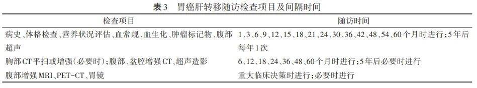推荐意见4:胃癌肝转移病人应常规检测血清肿瘤标记物CEA、CA19-9、CA72-4、CA125、AFP等,并在后续随访中定期复查。(证据级别:2a)