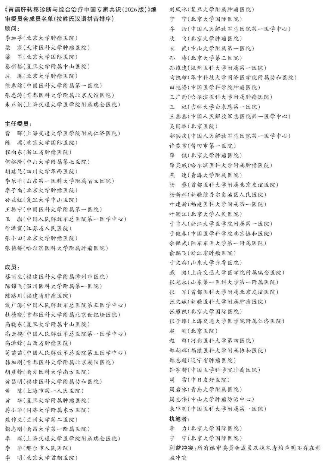 胃癌肝转移诊断与综合治疗中国专家共识(2026版)