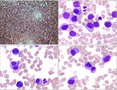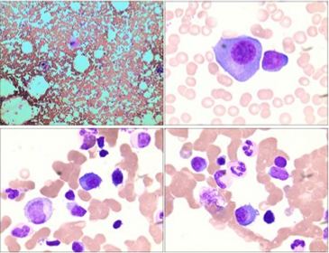 骨髓涂片:浆细胞占75.0%,以幼稚浆细胞为主,可见双核浆细胞。