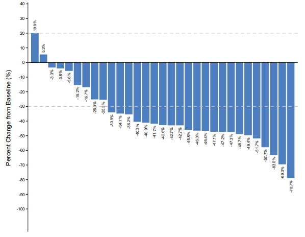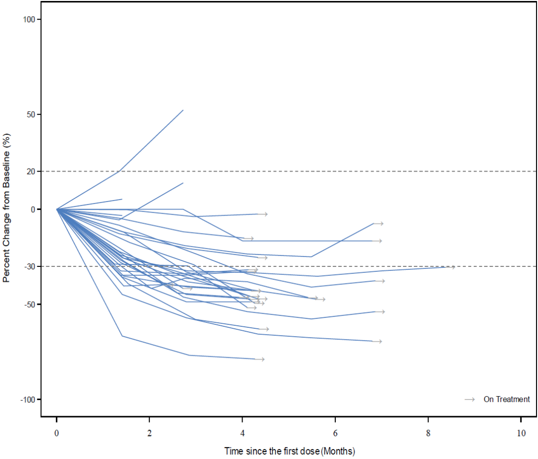 图3. 靶病灶较基线变化的百分比