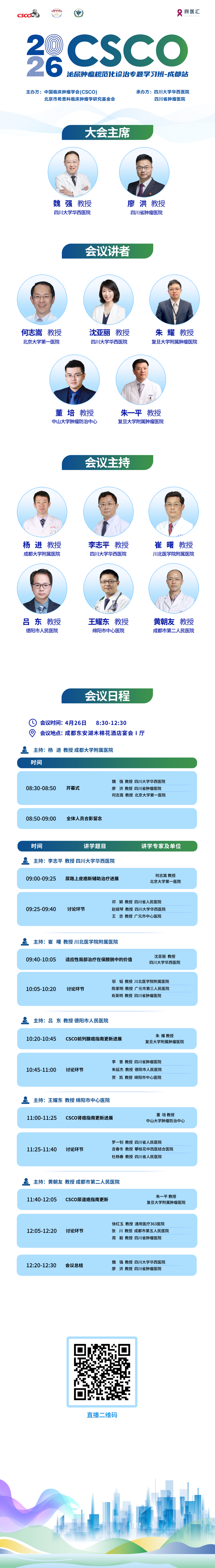 【会议预告】2026 CSCO泌尿肿瘤规范化诊治专题学习班(成都站)