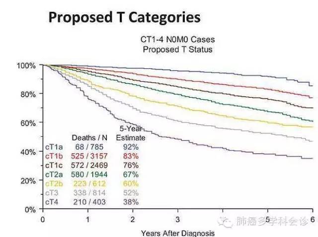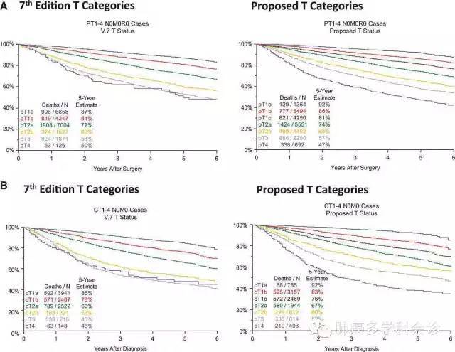 重新分类大于5cm且小于或等于7cm的肿瘤分为T3;