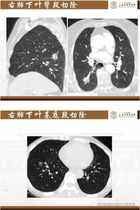 元芳,表现为肺磨玻璃结节的早期肺癌,特别是病灶位置较深者,可以采用肺段切除,以减少肺功能损失,同时保证肿瘤根除。