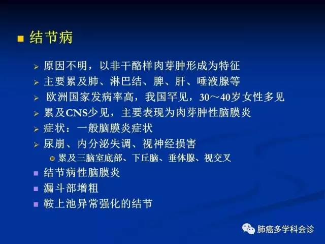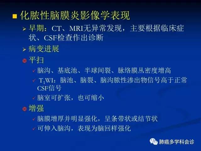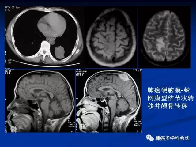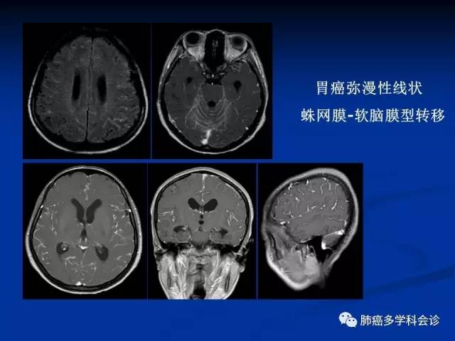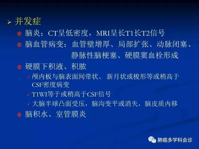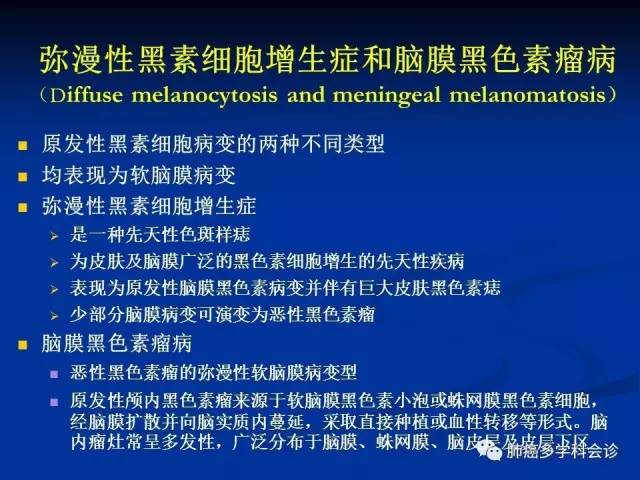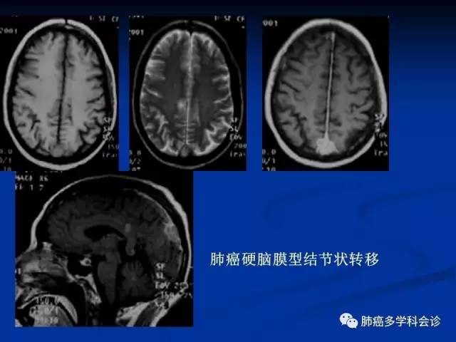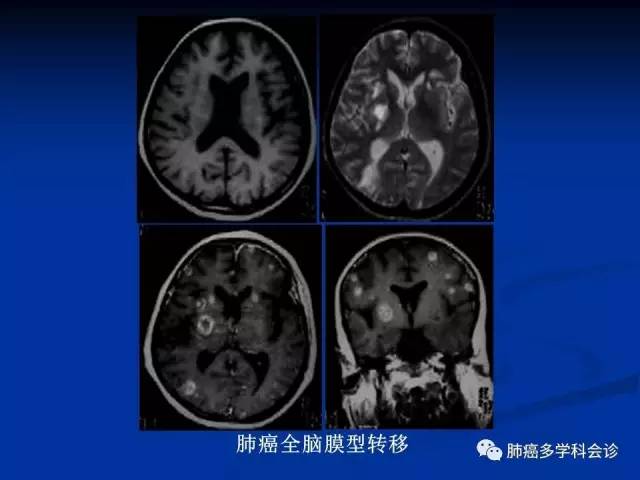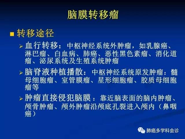 血行转移:中枢神经系统外肿瘤,如乳腺癌、淋巴瘤、白血病、肺癌、恶性黑色素瘤、消化道瘤、泌尿系统及生殖系统肿瘤