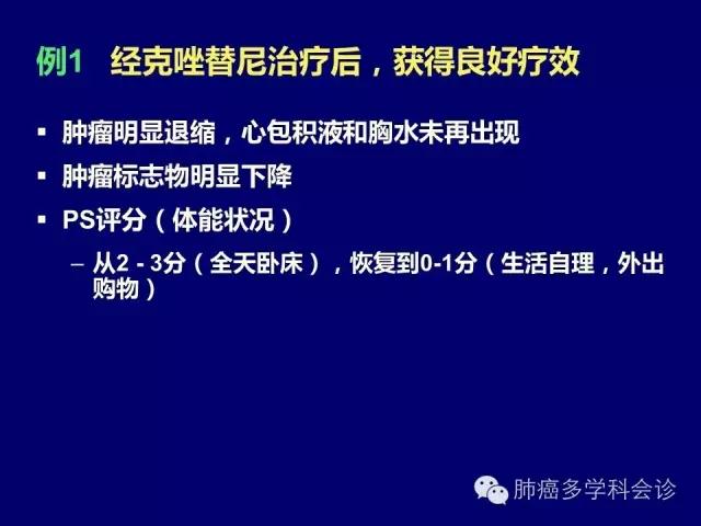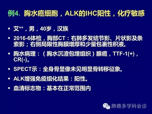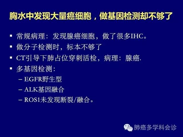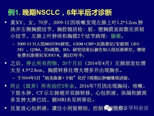 长期治疗过程中的误判:因为疾病进展缓慢而认为有效。在 6 年半漫长过程中都没有检测(组织、胸水、血液)