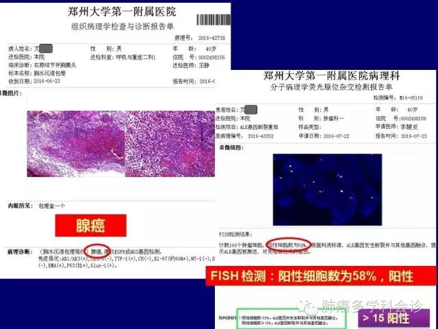 胸水中诊断:常规病理 + 分子病理(ventana IHC)