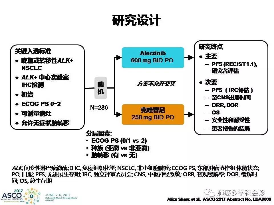 【ASCO'17】ALK阳性NSCLC一线治疗,Alectinib完胜克唑替尼