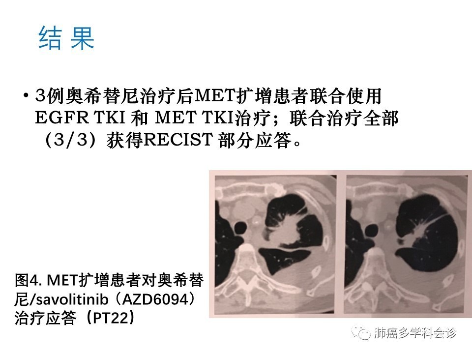 • 联合MET抑制剂的治疗对MET扩增的患者有效,联合MET和EGFR抑制剂的临床试验(NCT02143466)正在进行,应该考虑用于这些患者。