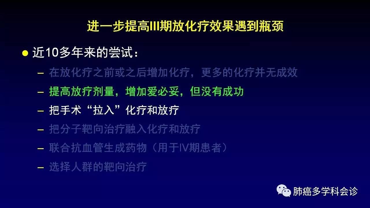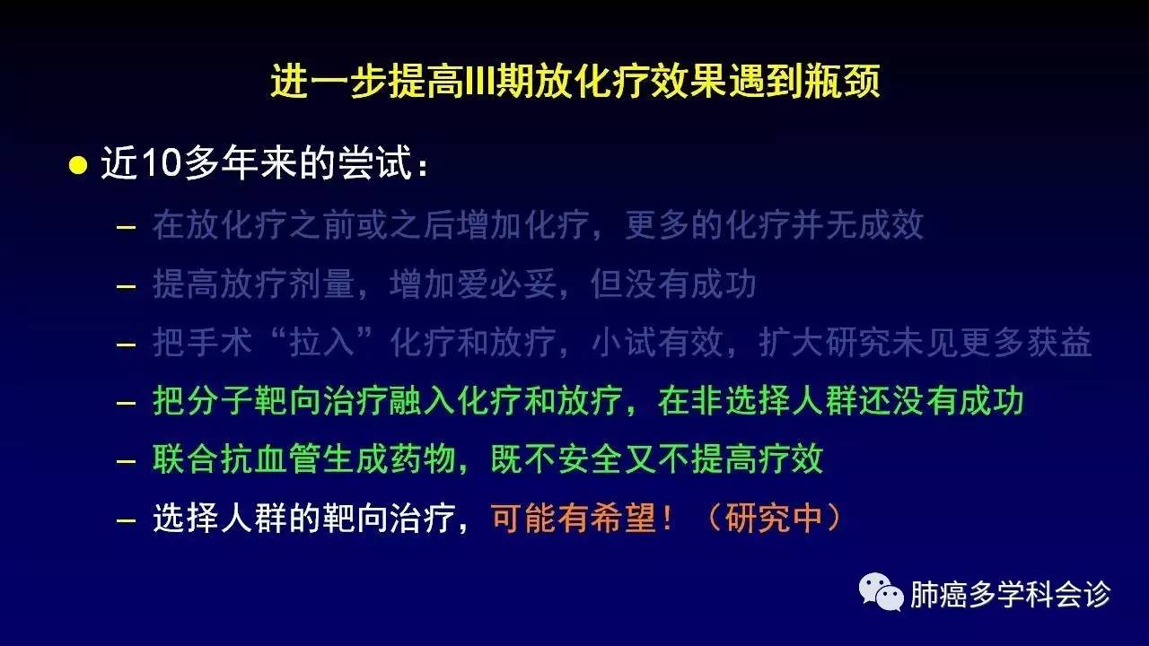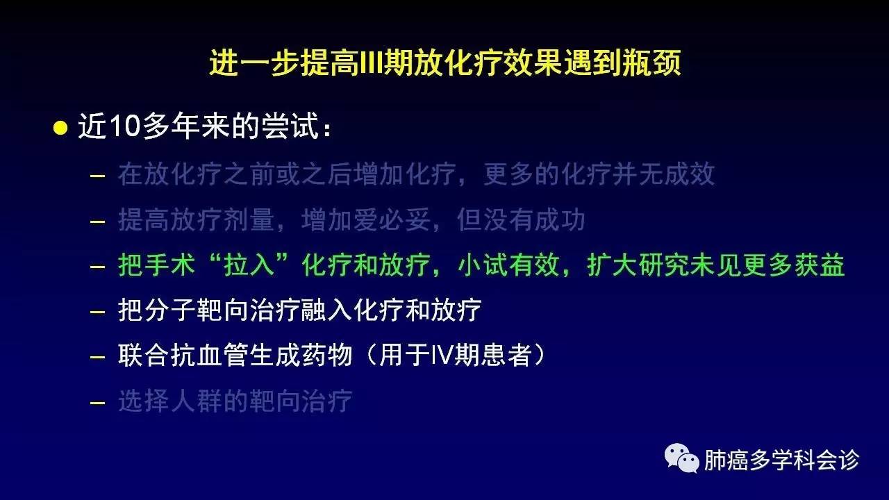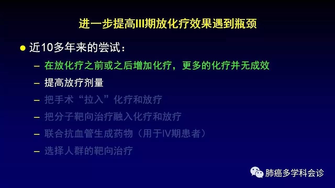 进一步提高III期放化疗效果遇到瓶颈(hit a plateau),近10多年来的尝试: