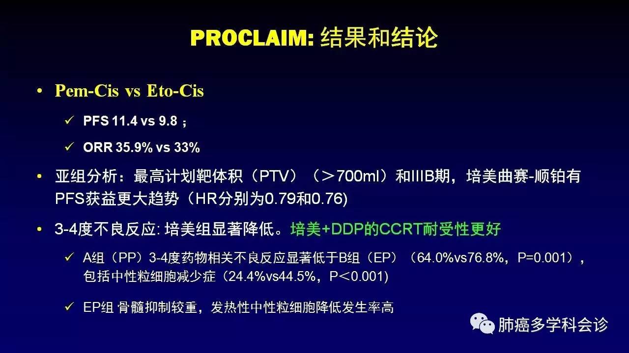 • PEM+DDP:在靶体积较大和IIIB期PFS获益稍大,耐受更好