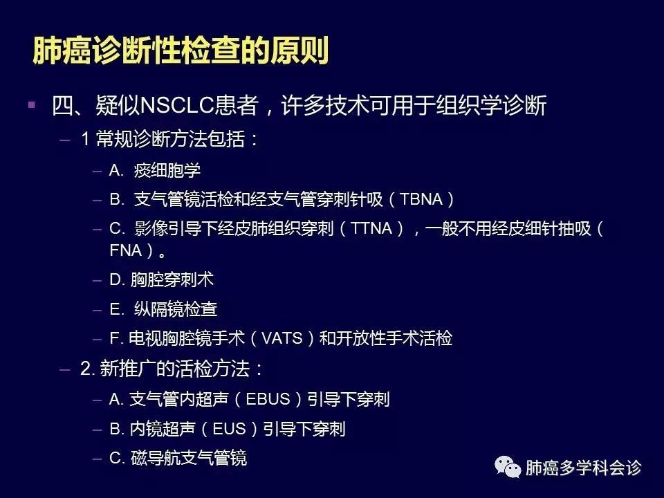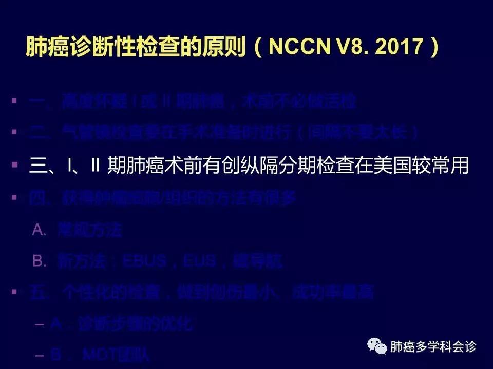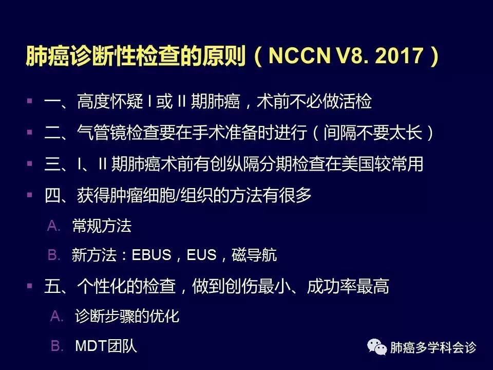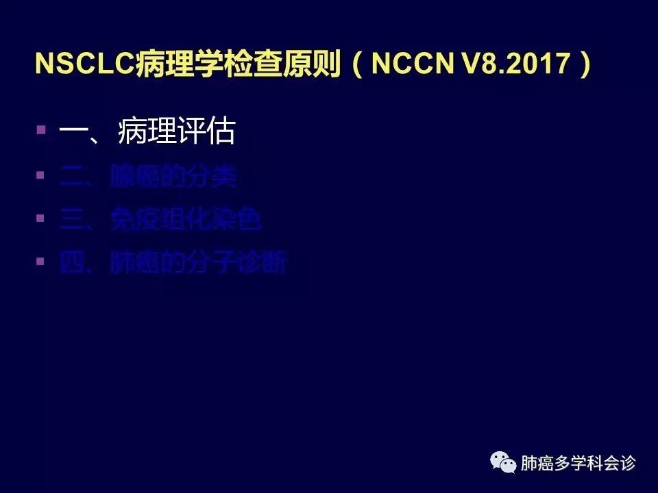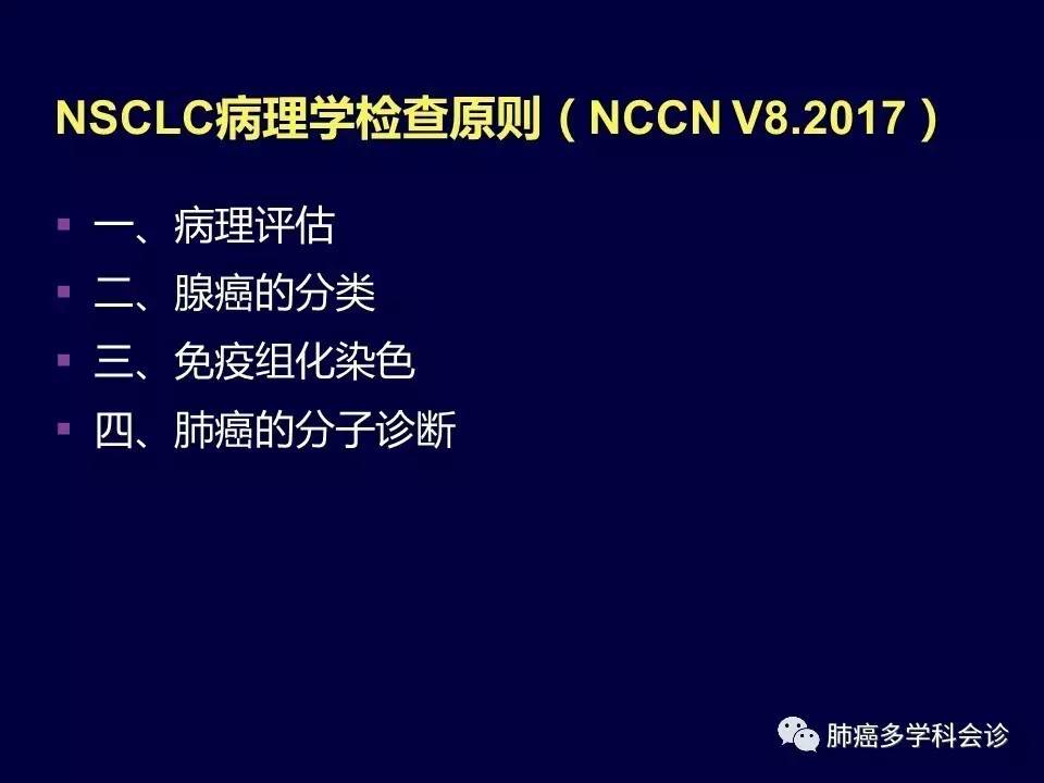 NSCLC诊断性检查和病理检查原则(NCCN V8. 2017)