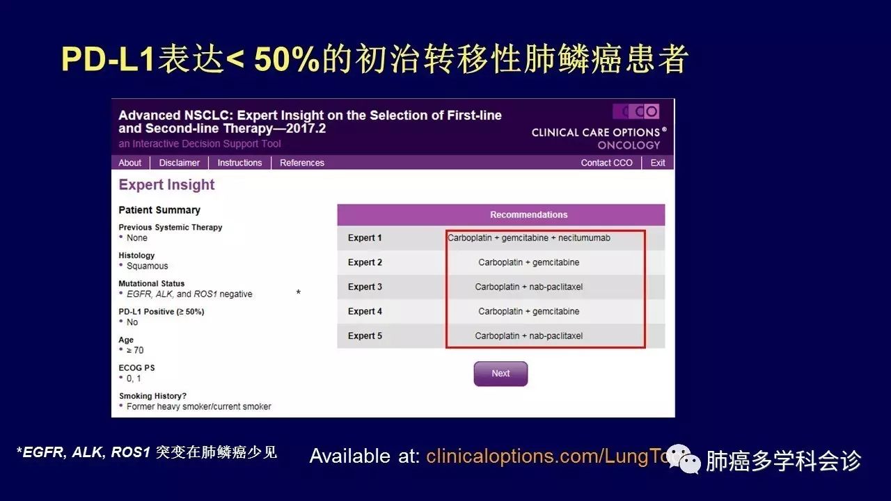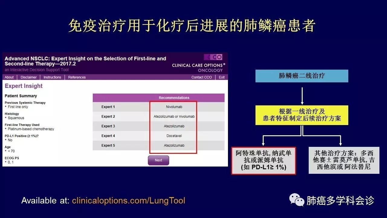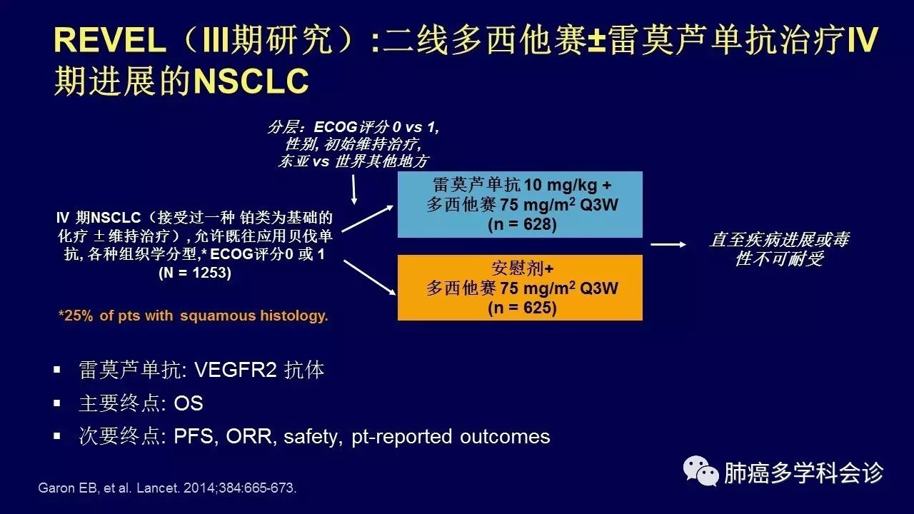 4. 不适合免疫治疗的患者二线或三线治疗选择包括:多西他赛 ± 雷莫芦单抗