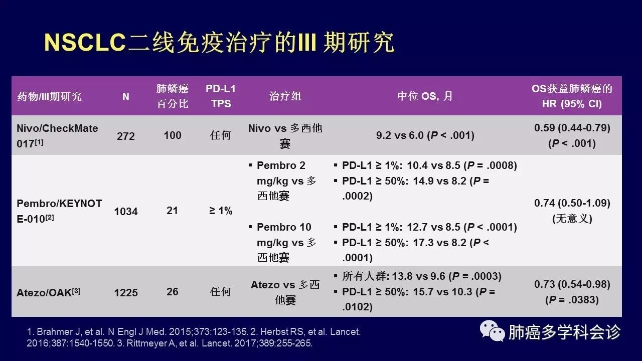 3. 免疫治疗是多数患者的二线标准治疗(nivolumab, pembrolizumab, atezolizumab):