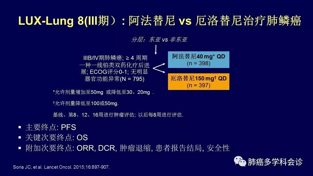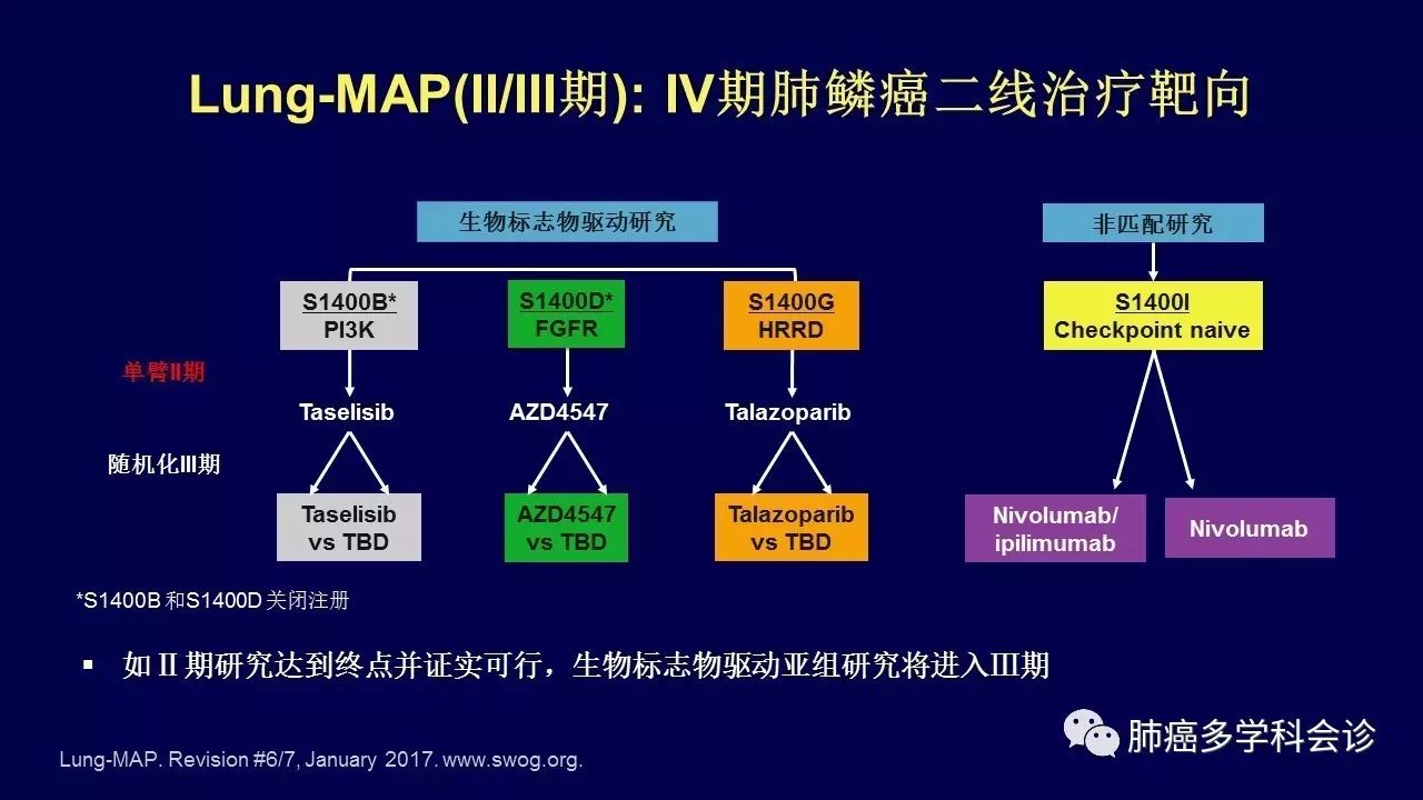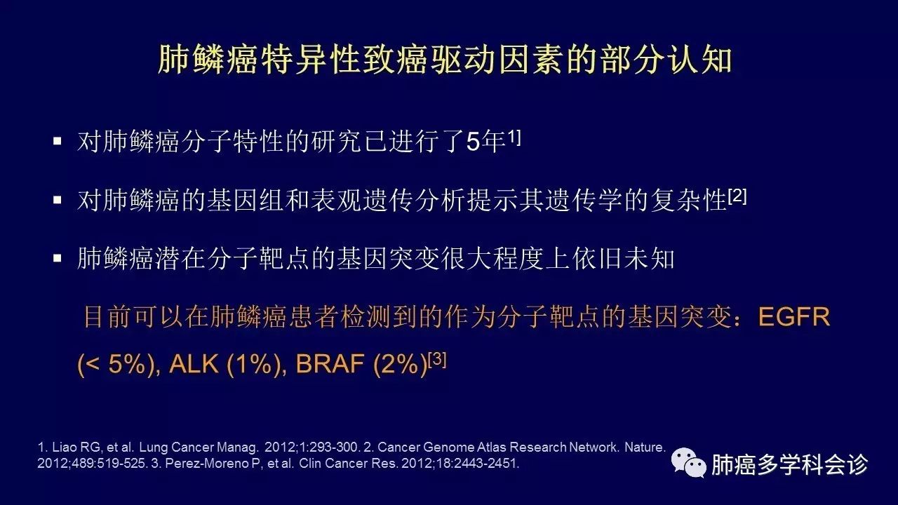 - 选择性的肺鳞癌患者应检测 EGFR和BRAF V600E突变, ALK 及ROS1易位