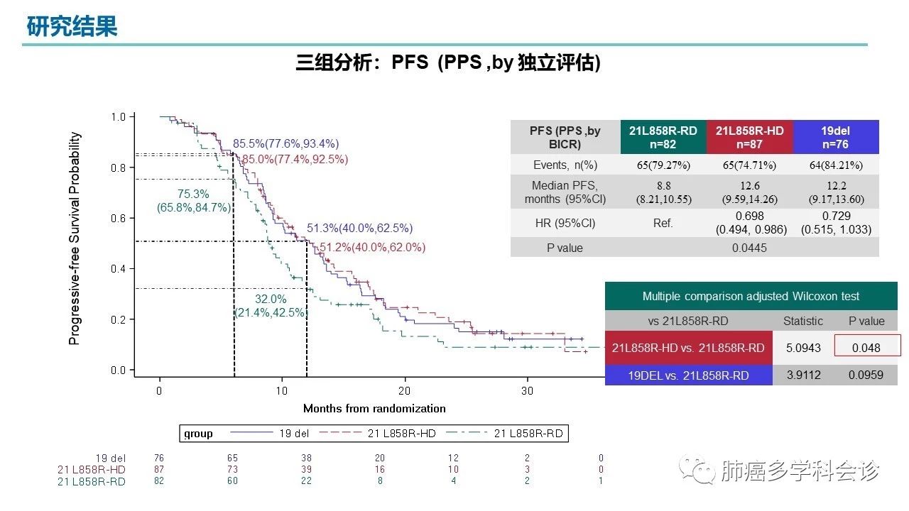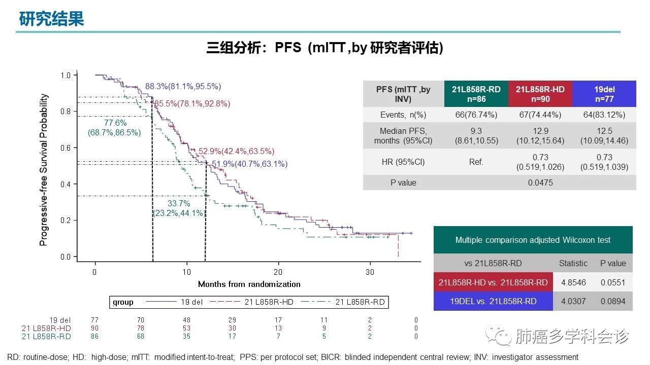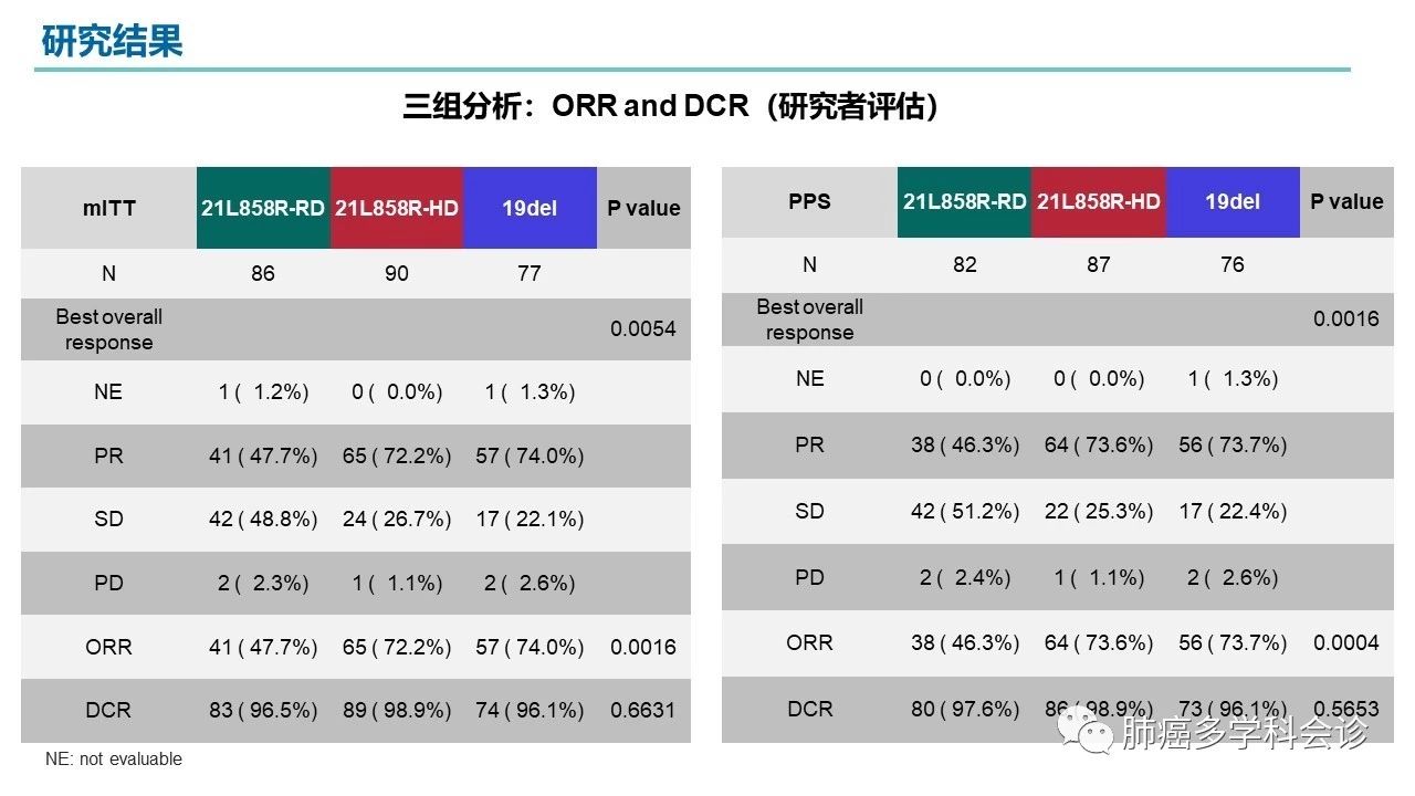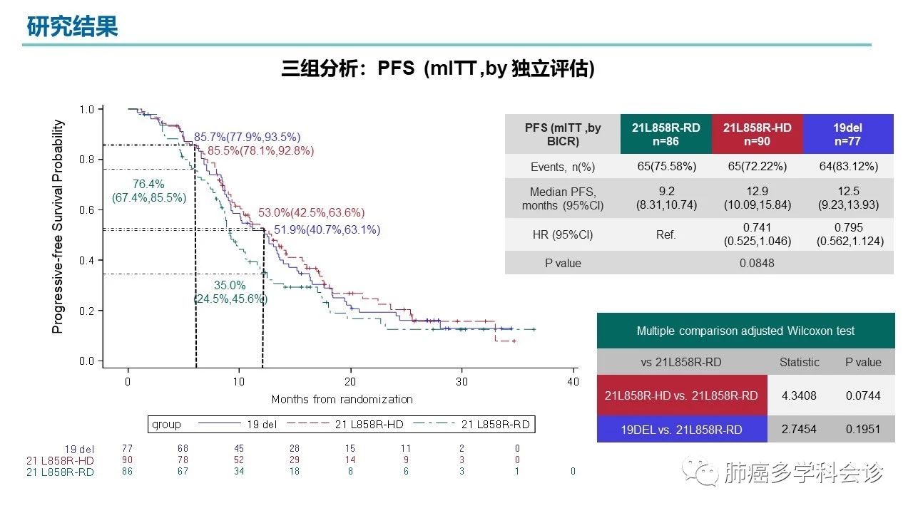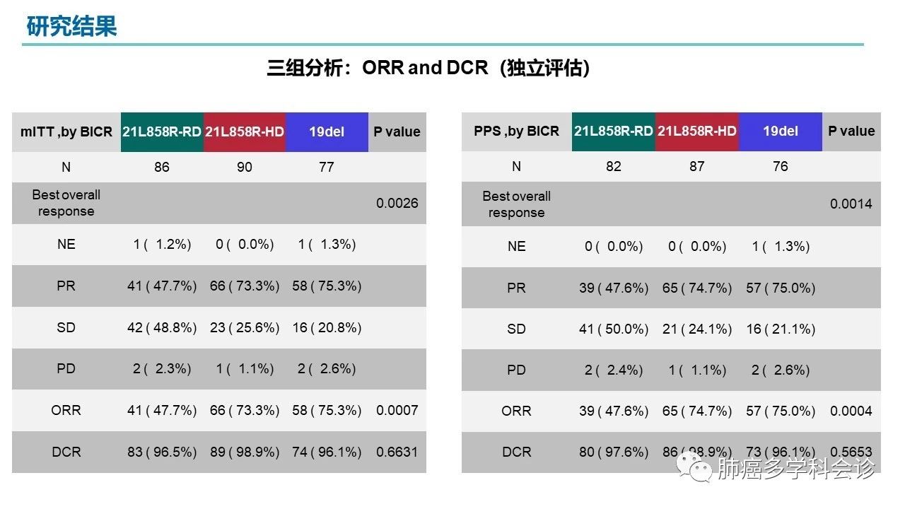 • 具有更高的ORR:独立评估mITT人群的21-RD, 21-HD, 和19 del 组ORR分别为47.7%, 73.3%, 和75.3% (p=0.0007);21 -HD比21 -RD, ORR提高25.6%