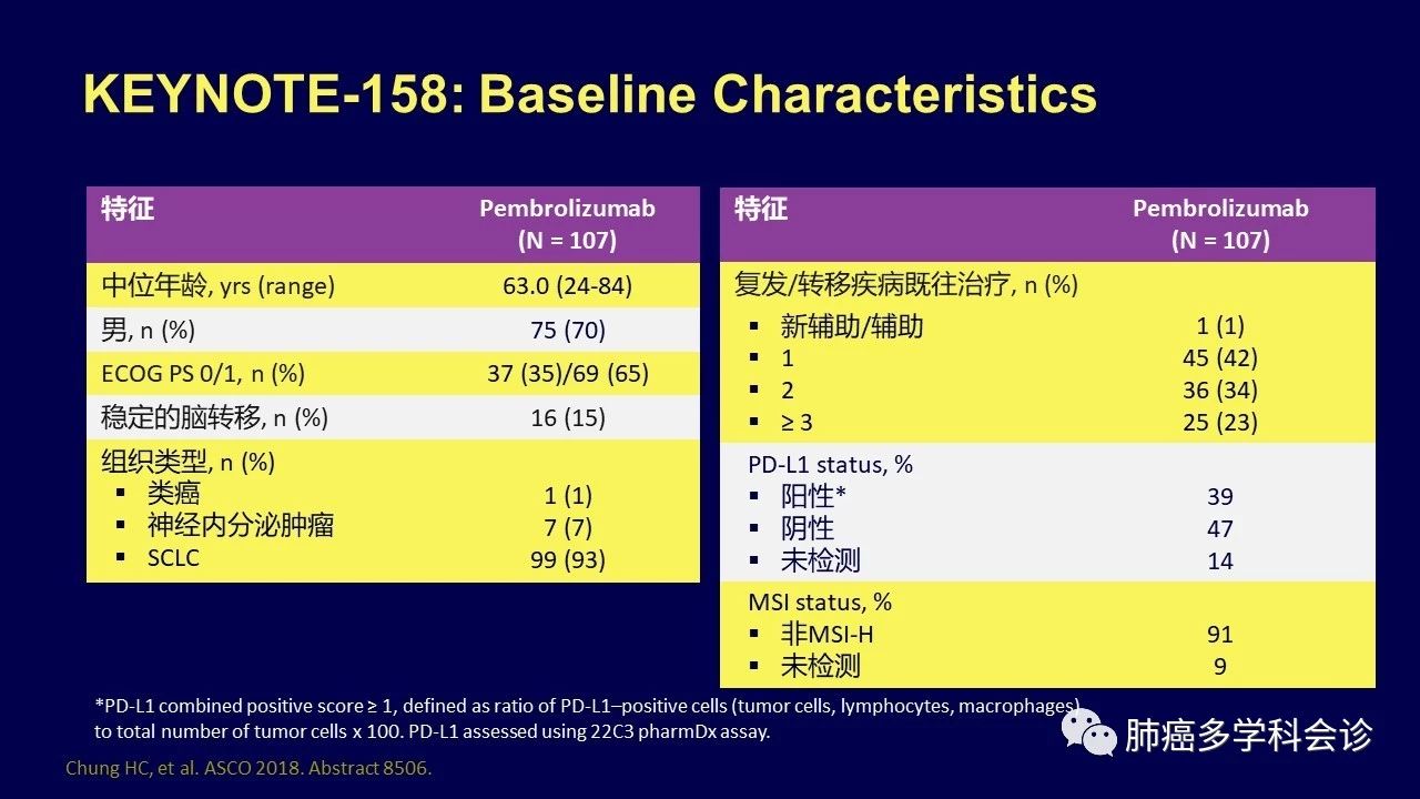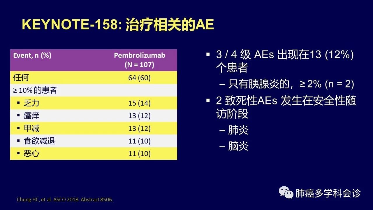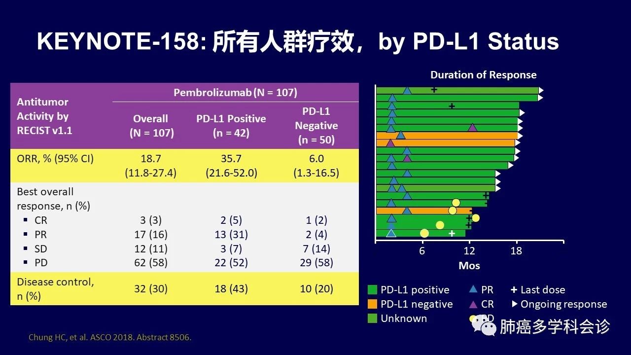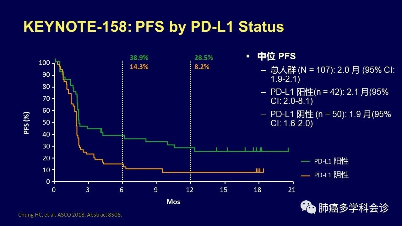 • pembrolizumab 在二线有前途,PD-L1–阳性mOS : 14.9 mos
