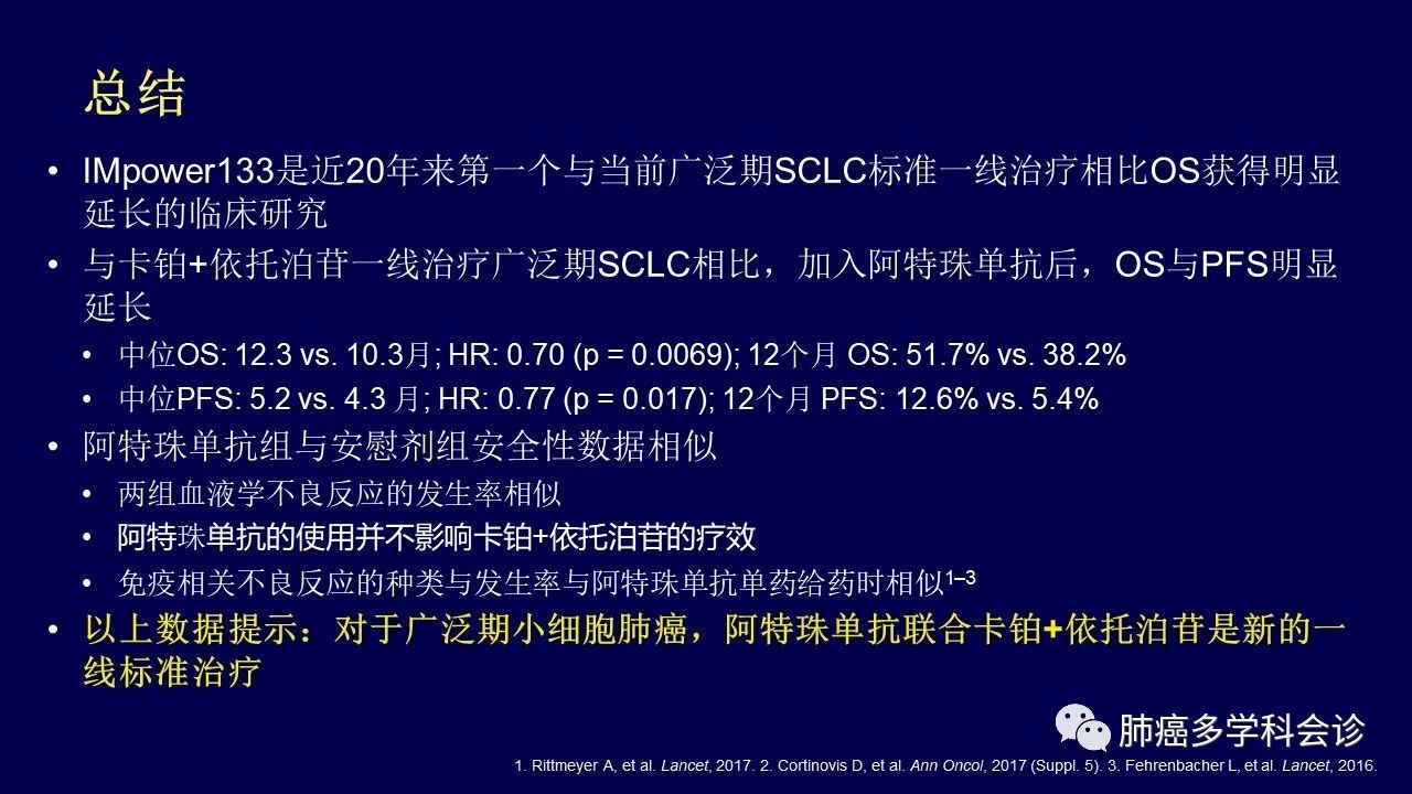 • 对于广泛期小细胞肺癌,阿特珠单抗联合卡铂+依托泊苷是新的一线标准治疗