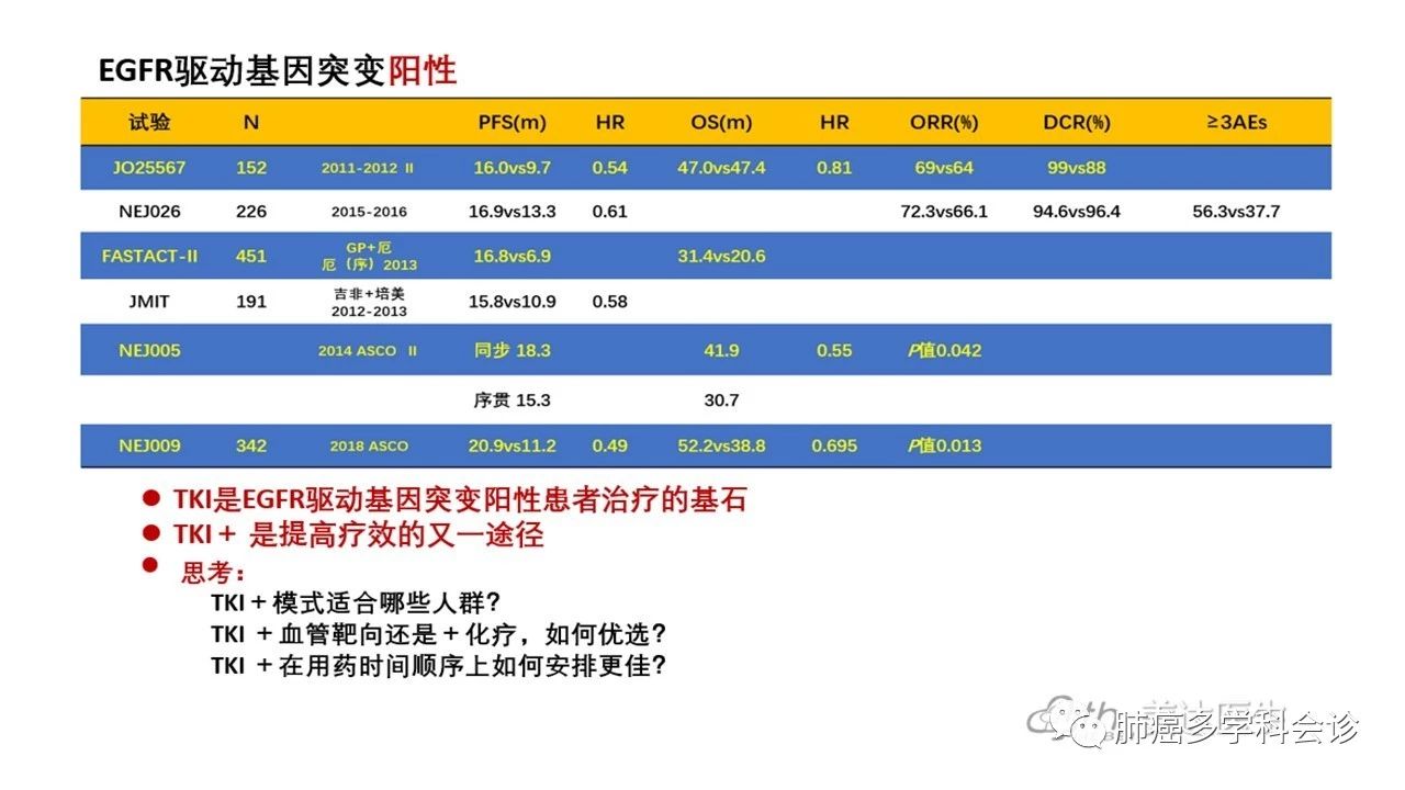 • 尽管联合治疗存在优势,由于缺乏更多的强力数据及担心不良反应增加,EGFR-TKI+化疗的临床一线治疗仍存在争议。