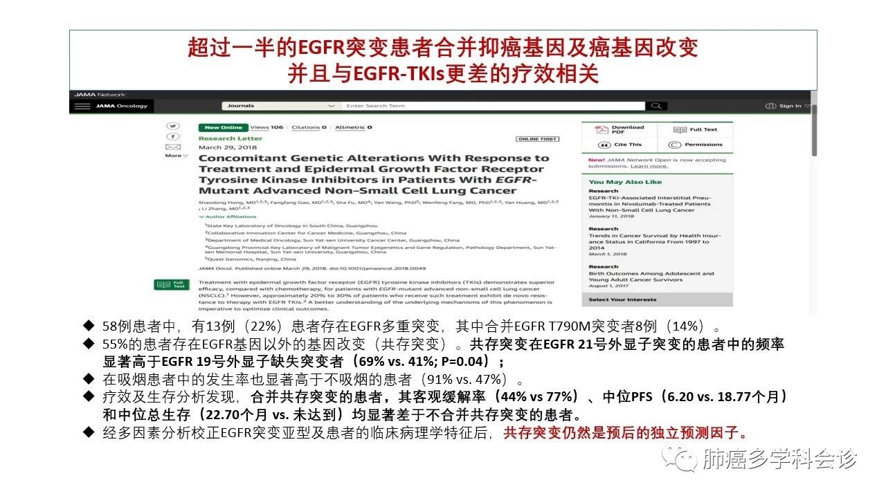 • Zhou等人的研究也得出低丰度患者的疗效及生存期更差的类似结果。针对这类低丰度突变的患者,是否可以用其他治疗方案来提高其临床疗效?