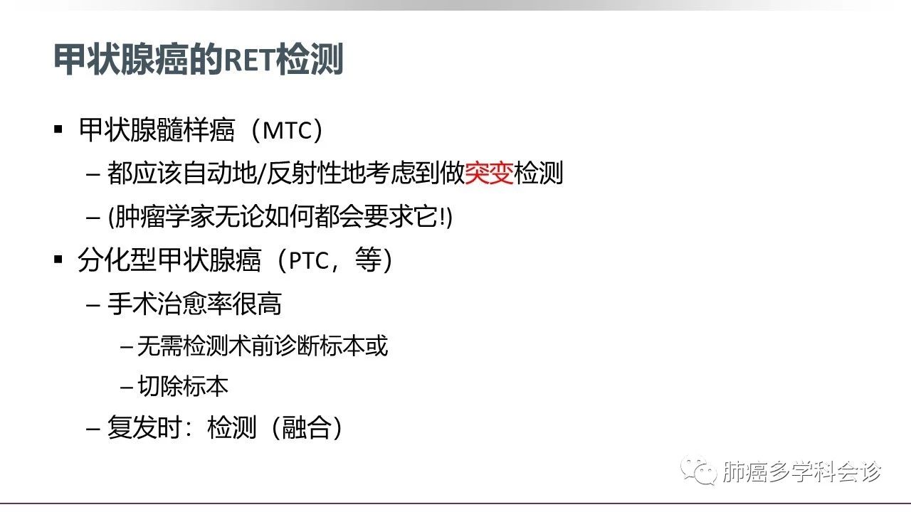 • 阐述为什么要对肺癌和甲状腺癌检测RET