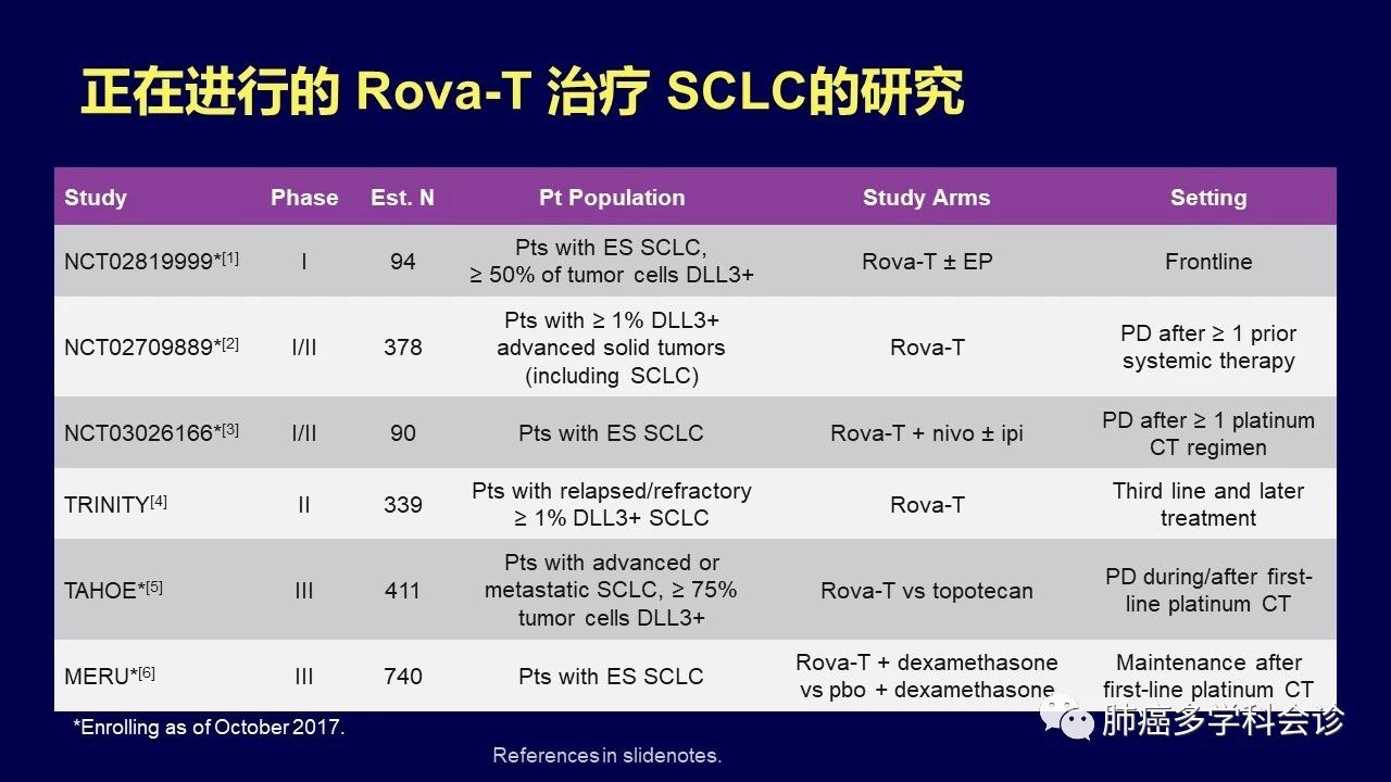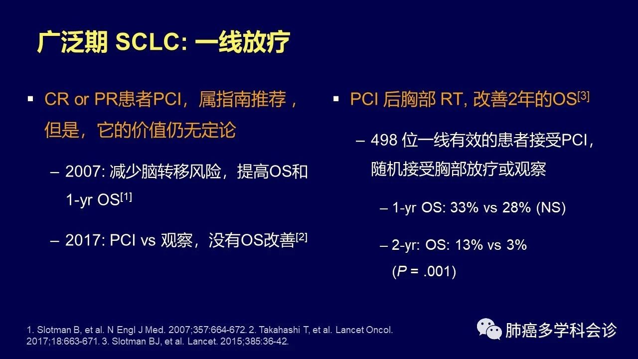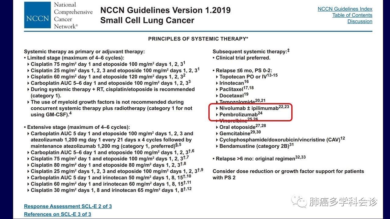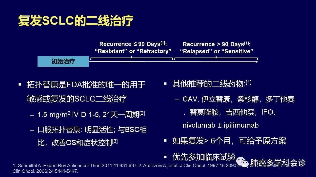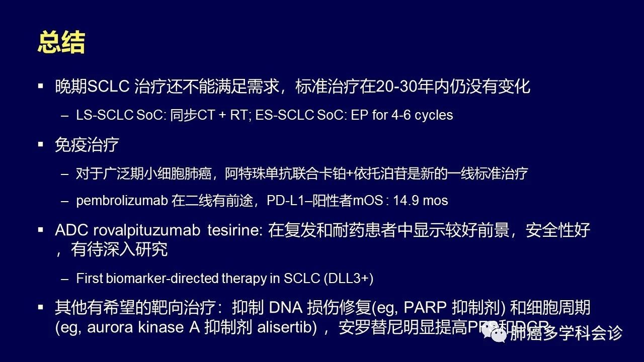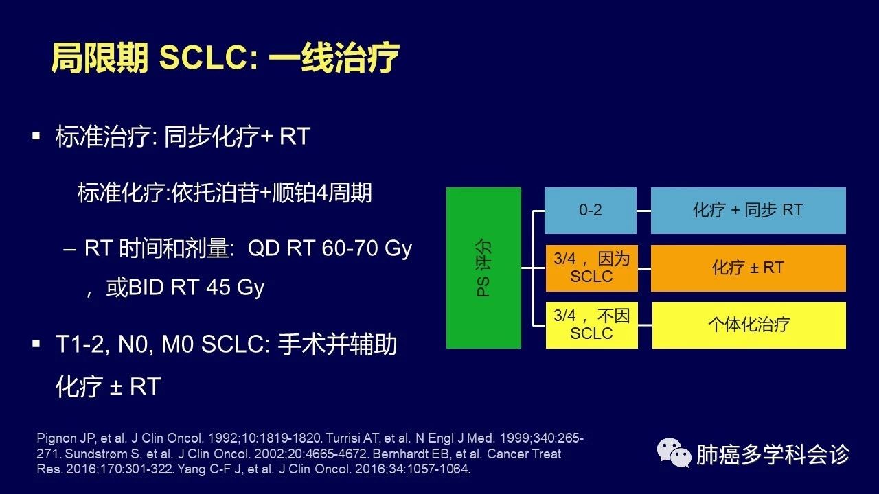 - LS-SCLC SoC: 同步CT + RT; ES-SCLC SoC: EP for 4-6 cycles