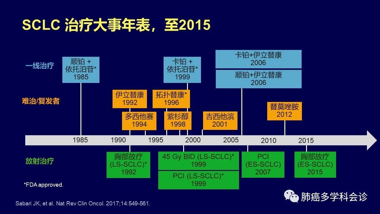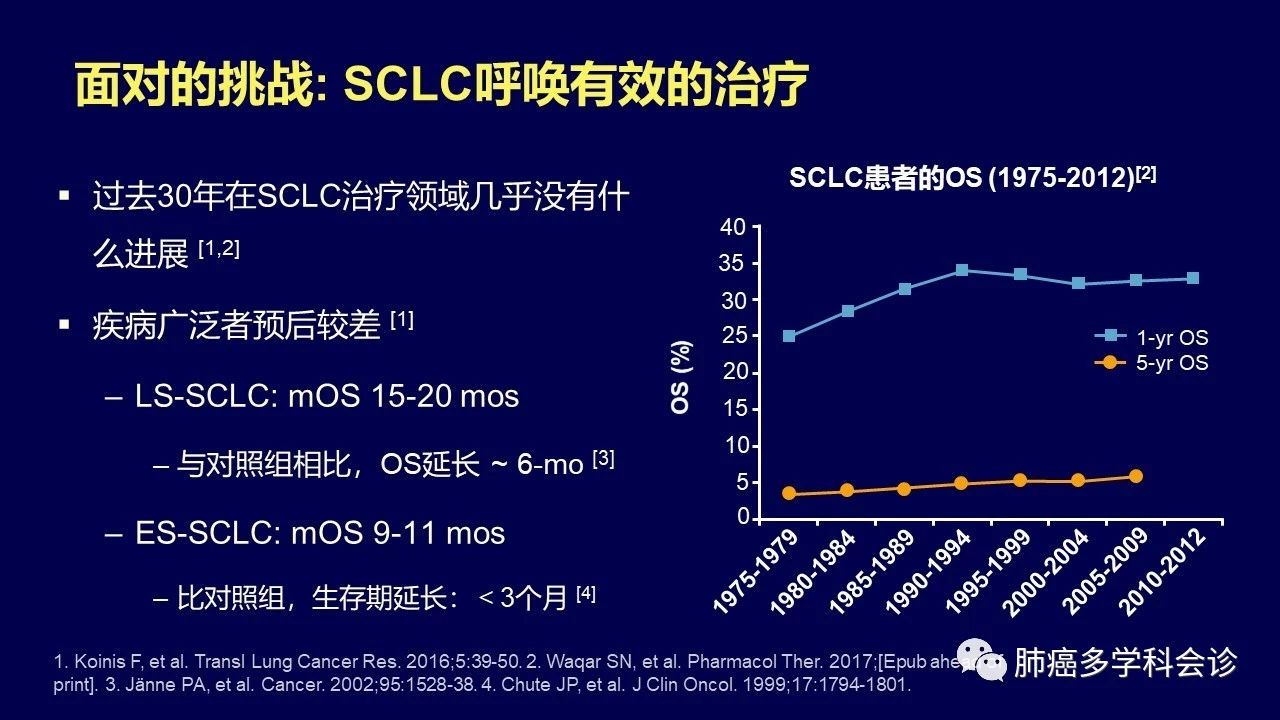 • 晚期SCLC 治疗还不能满足需求,标准治疗在20-30年内仍没有变化