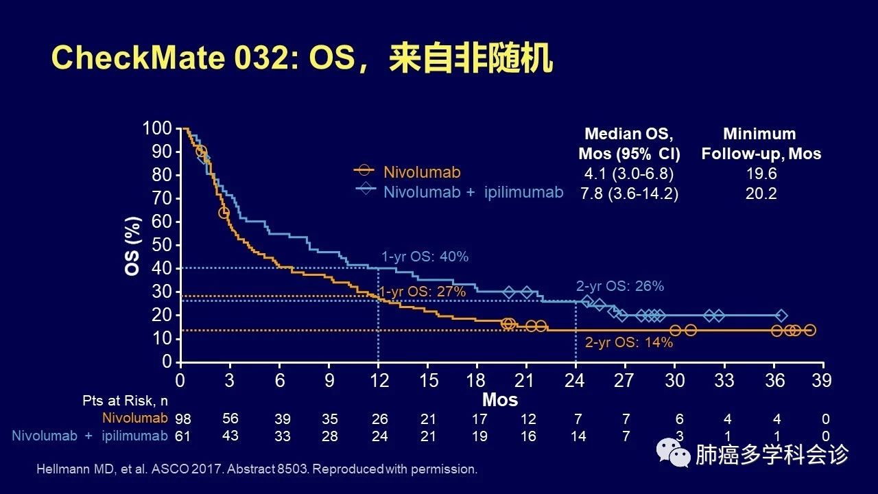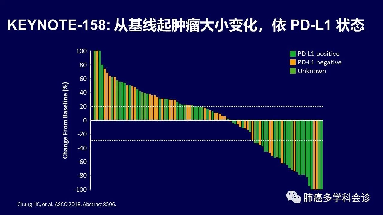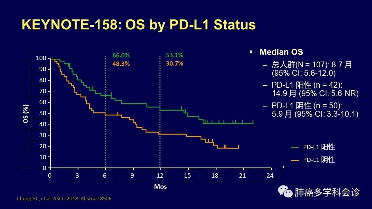 - pembrolizumab 在二线有前途,PD-L1–阳性者mOS : 14.9 mos