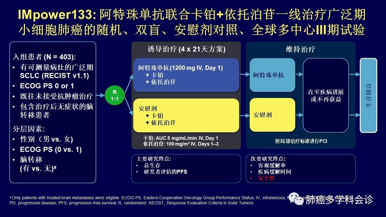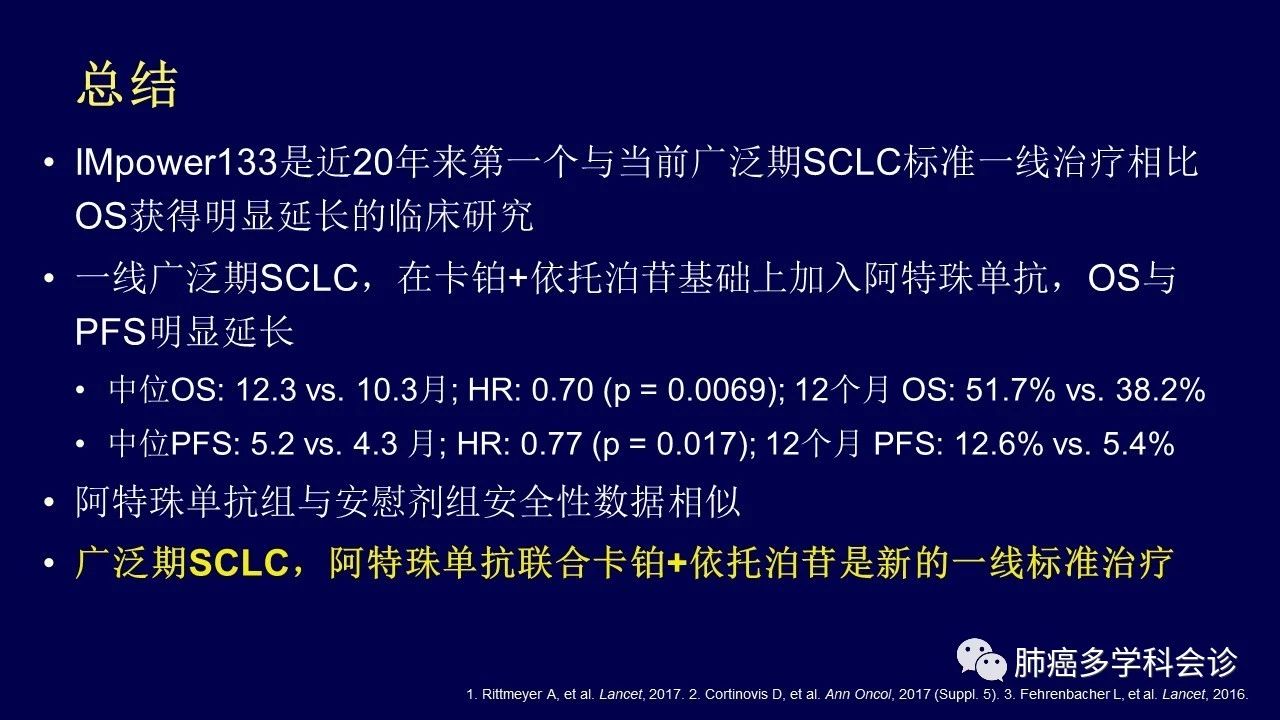 - 对于广泛期小细胞肺癌,阿特珠单抗联合卡铂+依托泊苷是新的一线标准治疗
