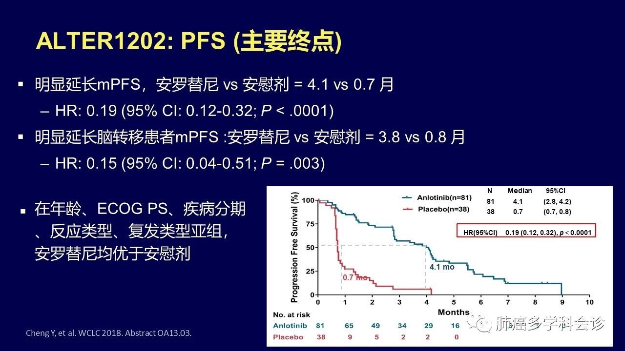 • 其他有希望的靶向治疗:抑制 DNA 损伤修复(eg, PARP 抑制剂) 和细胞周期(eg, aurora kinase A 抑制剂 alisertib) ,安罗替尼明显提高PFS和DCR