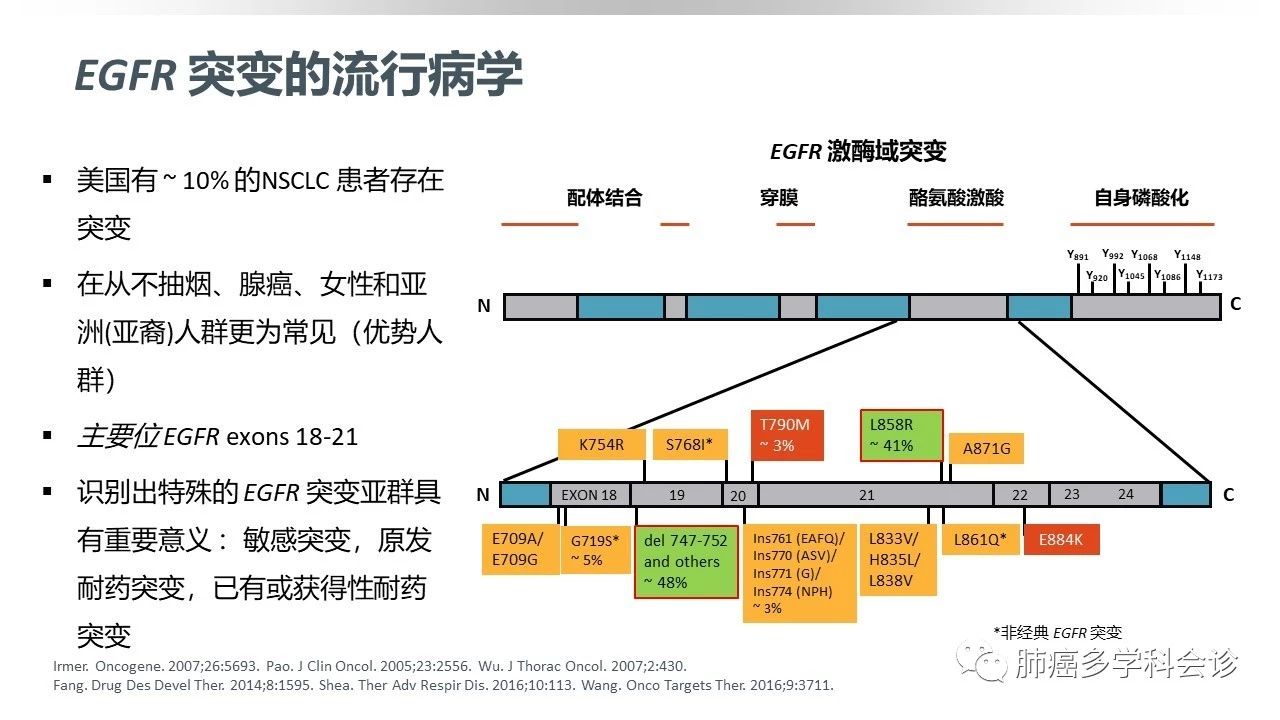 - 腺癌占所有肺癌的 47% ,23%的患者具有 EGFR 敏感突变; 代表了 ~ 10% 的美国晚期NSCLC